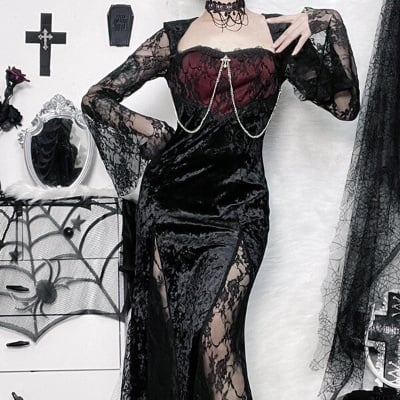 In the murmurs of night, a Gothic lace dress blooms, merging classic beauty with mystery. More than attire, it's a dreamy pass to the border of reality and fantasy.